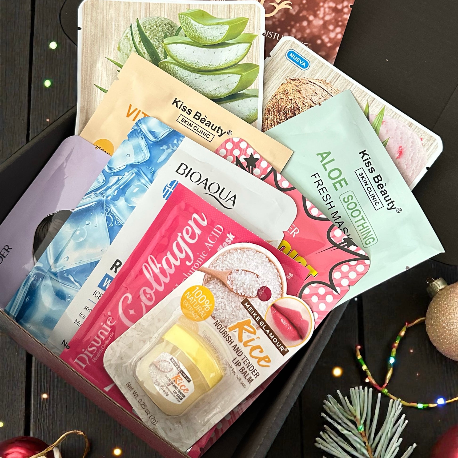 Lote de 10 mascarillas faciales + bálsamo labial